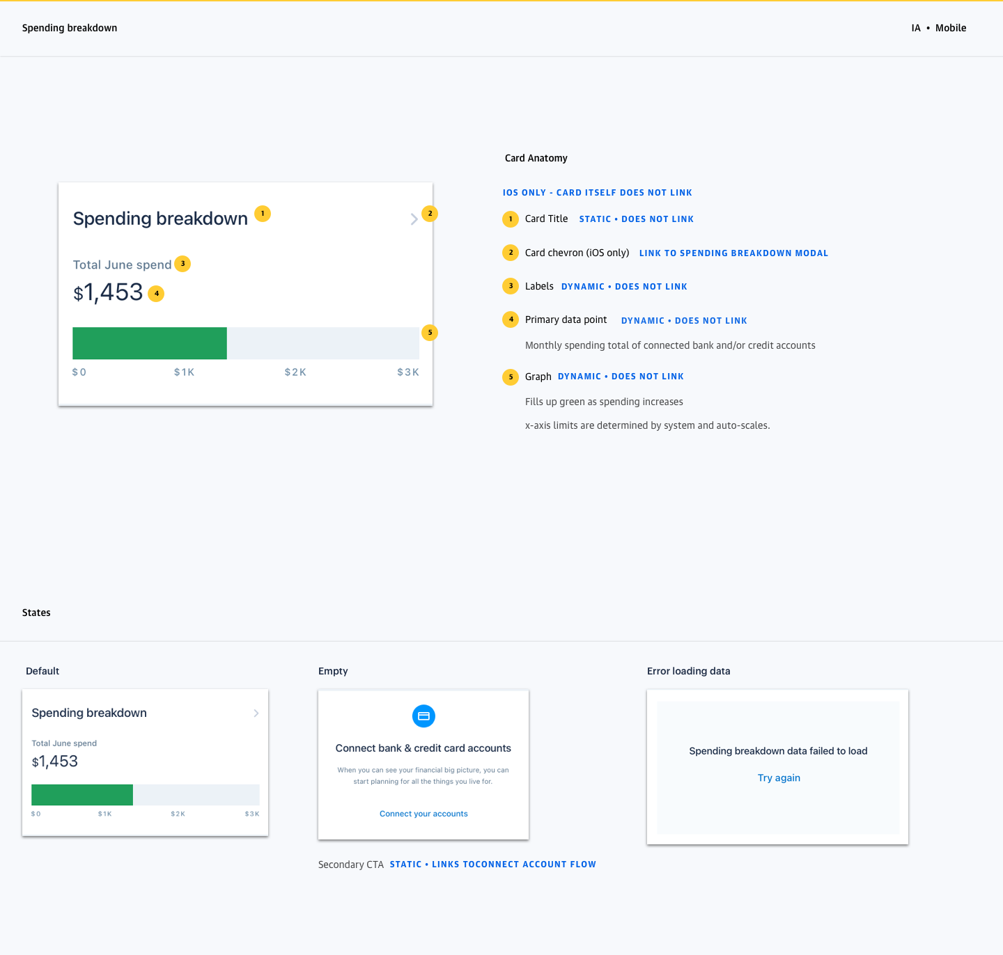 Reskinned the Summary, Accounts and Spending tabs to improve the experience and IA